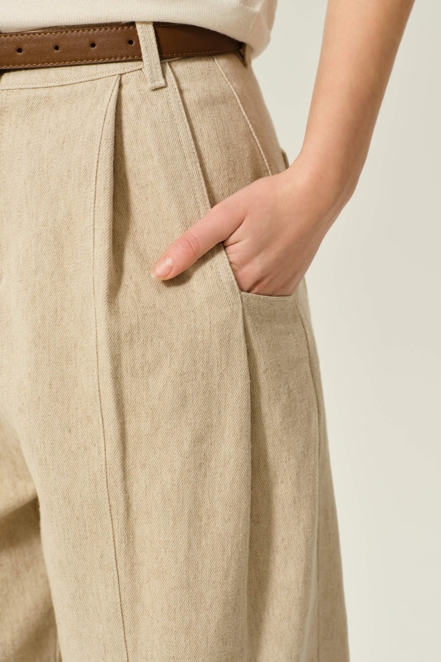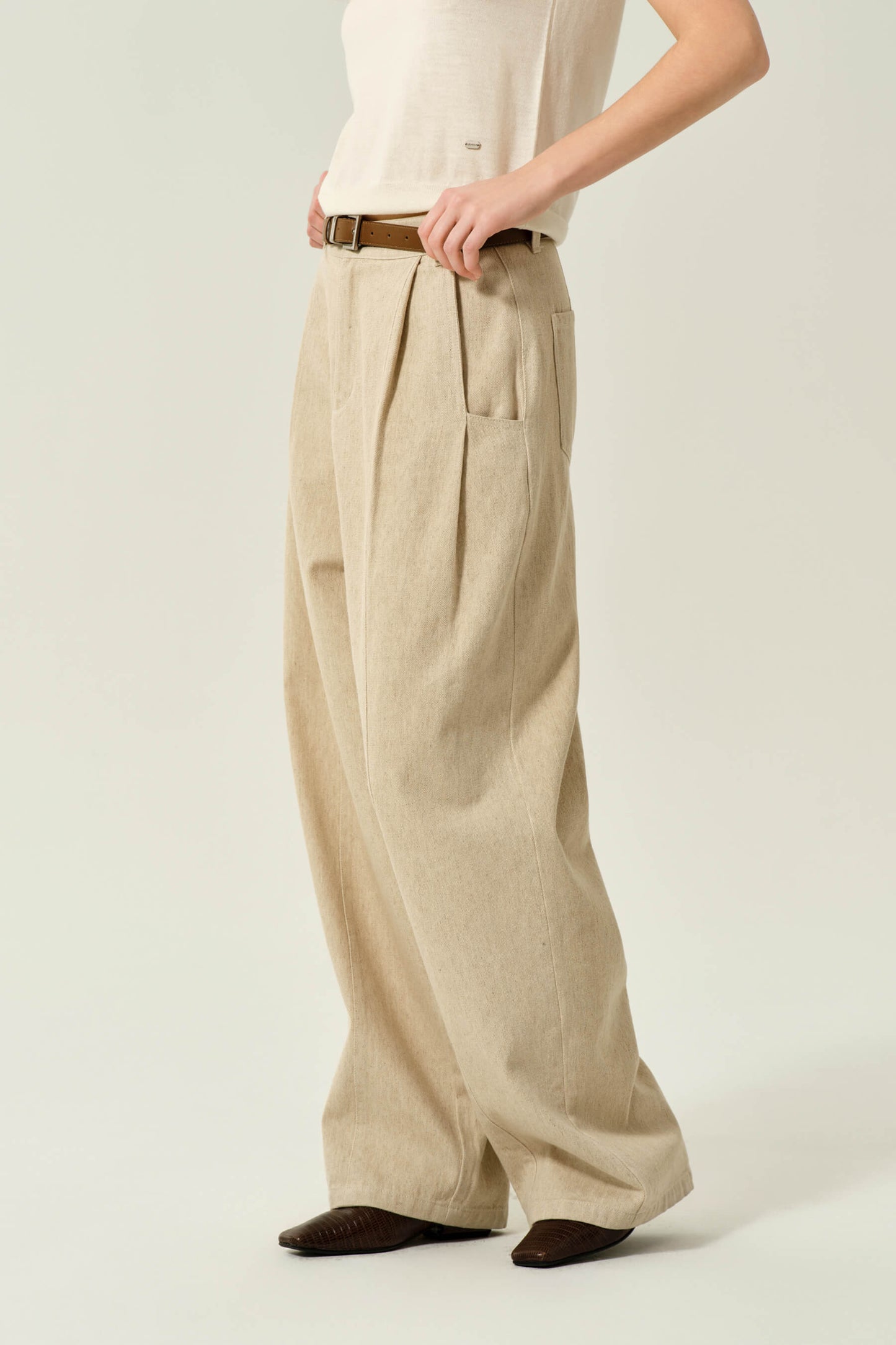 繭型棉麻長褲